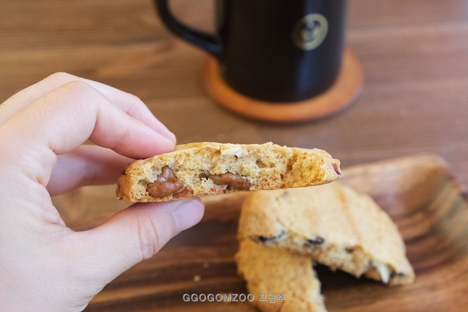 쿠키에는 초코칩과 아몬드 슬라이스, 호두에 더해 원두 알갱이도 들어있었다.