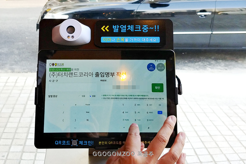 들어가자마자 출입 명부 작성과 동시에 열 체크를 할 수 있는 시스템이 돼있어서 편리했다.